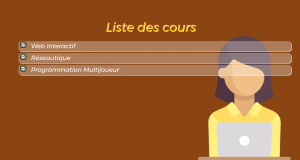 Notre application Electron présente une page de liste des cours disponibles et une page de détail pour chacun.
